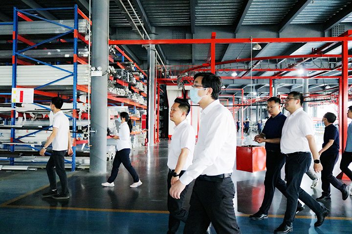熱烈歡迎江西南昌安義領(lǐng)導(dǎo)蒞臨喬居門窗生產(chǎn)基地參觀考察!